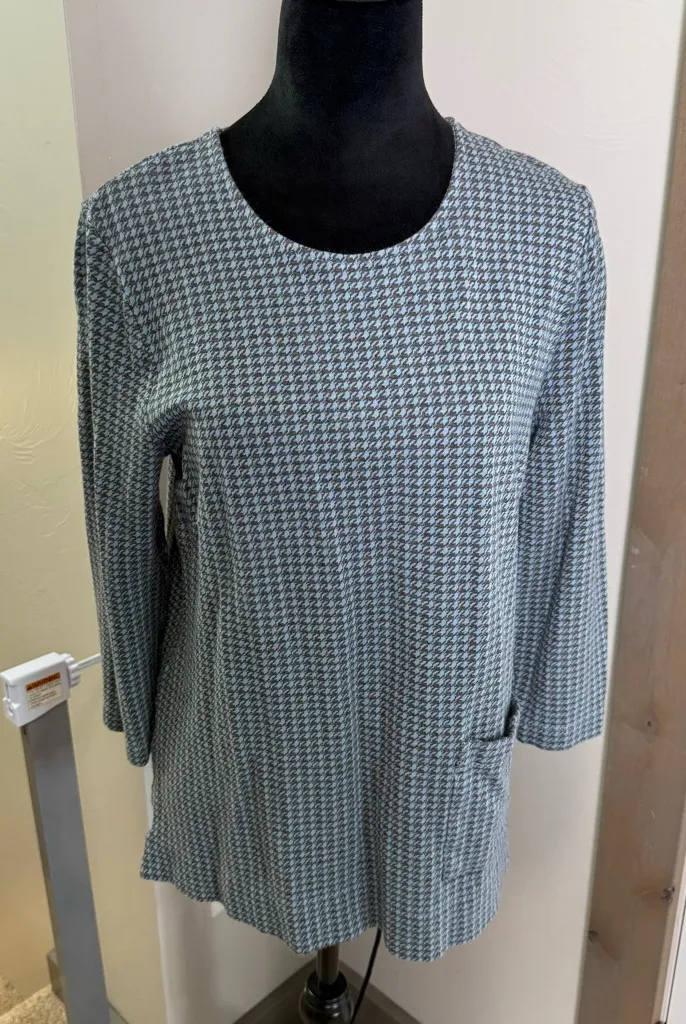 J. Jill Ponte Knit Shirt 3/4 Sleeves Houndstooth Brown Blue Scoop Neck Blouse M Size M - $18 - From Abbey
