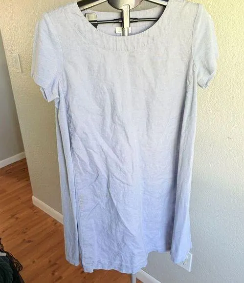 J. Jill Pure Jill 100% Linen Lagenlook Natural Shift Dress Farmhouse Cottage. Has stretch side panels. Women's Size Medium. Has some minor staining as pictured. Length: 34" Pit to pit taken flat: 20" baggy, oversized, lagenlook, natural, granola, farmhouse, sourdough, cottage core, vacation, tropical, cooling, summer dress, cruise wear, resort wear, poolside, baby blue