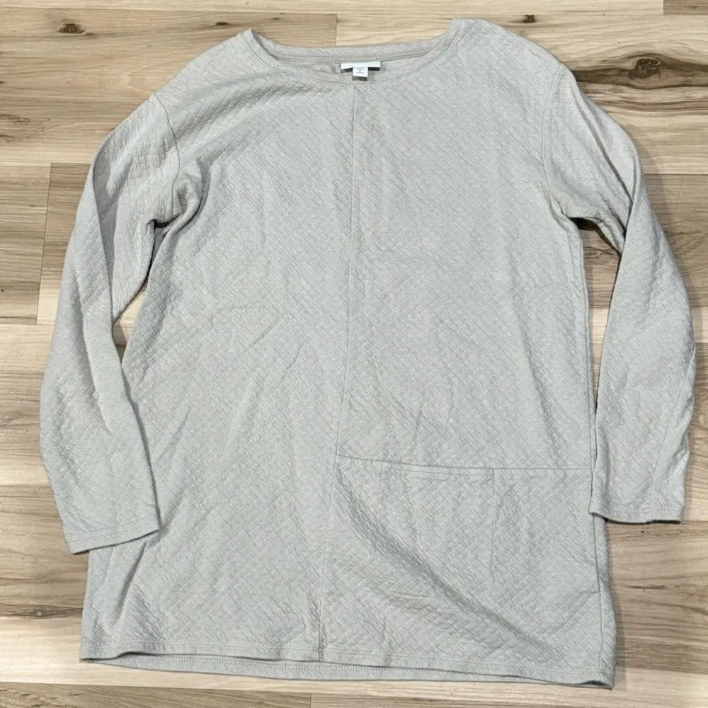 J Jill Pure Jill Grey Quilted Tunic Top Long Sleeve Women’s Small Petite Measurements- Pit to Pit:... Show more