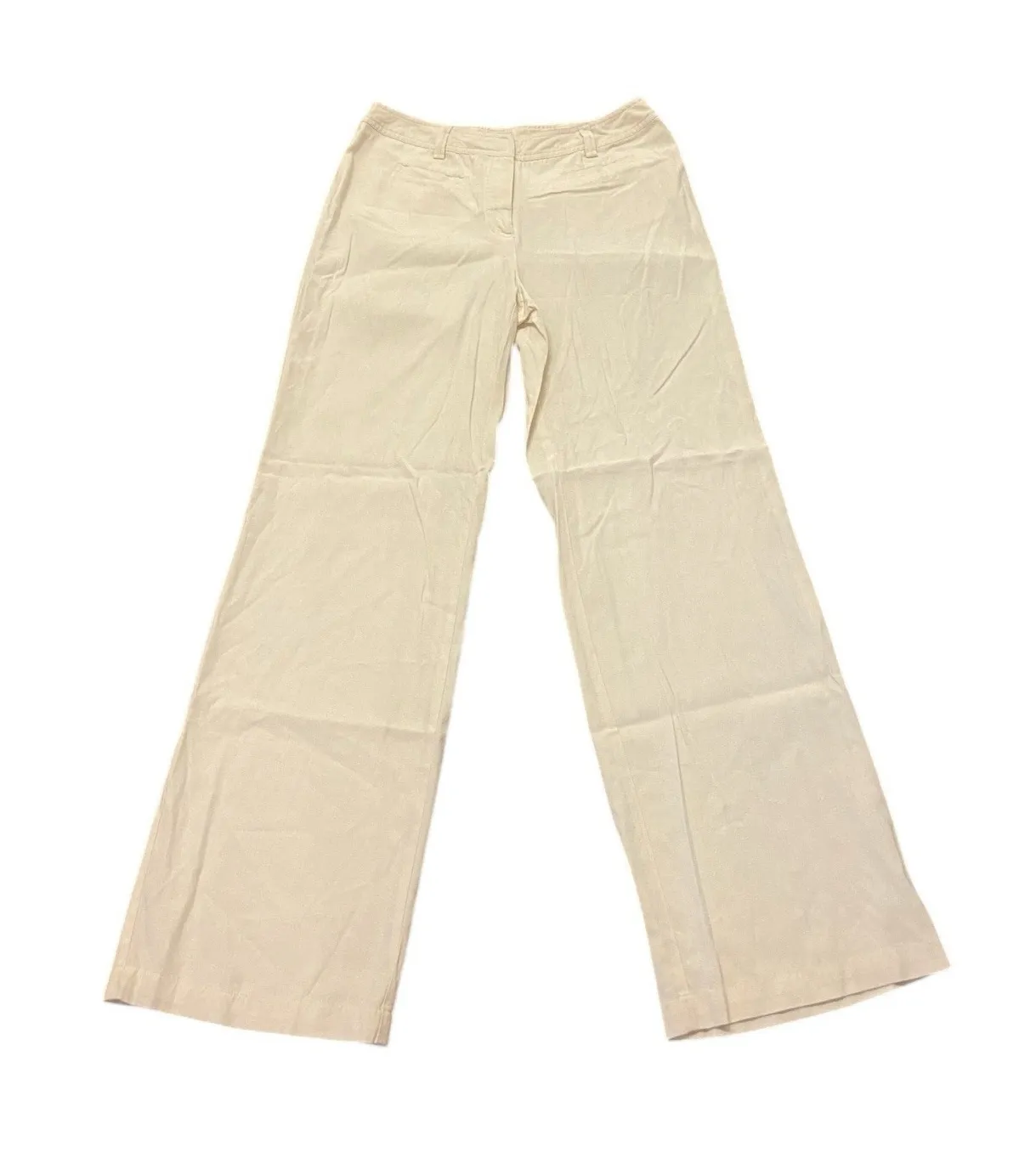 J. Jill cream colored wide-leg pants in size 8. Made from a blend of rayon from bamboo, Tencell lyocell, and cotton, these pants offer a comfortable and breathable fit. The flat front and mid-rise waistband with a button closure add to the pants' sleek design. Perfect for any season, these pants feature a solid pattern and pockets for added convenience. Whether you're dressing up or down, these J. Jill pants are a versatile addition to your collection. Machine washable for easy care, these pants are a must-have for any fashion-forward woman. Will ship quickly!