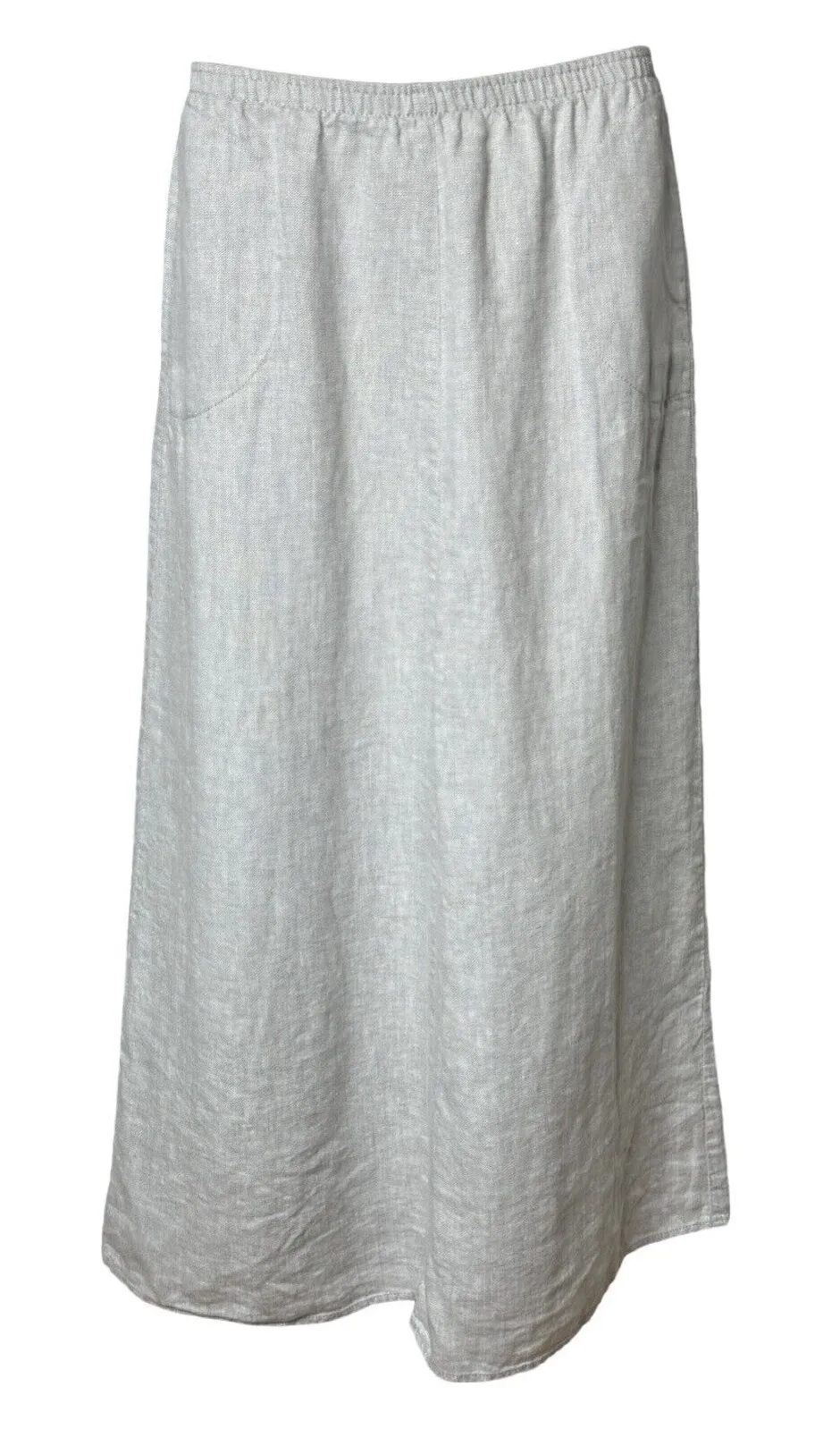 J. Jill Skirt Womens Small Cream Gold Shimmer Linen Preppy Neutral Minimalist Women's Size Large Midi Length Stretch Elastic Waist Lightweight Pockets Unlined Linen Polyester Blend Classic Measurements are Approximate: Length 36" Waist 30" plus stretch Gently Used Condition. No Rips Tears or Stains (Y8)