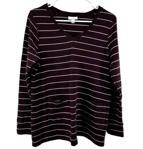 J. Jill Striped Tunic Long Sleeve Top Patch Pocket Knit V Neck Cotton Maroon M Red Size M - $50 - From Pearl