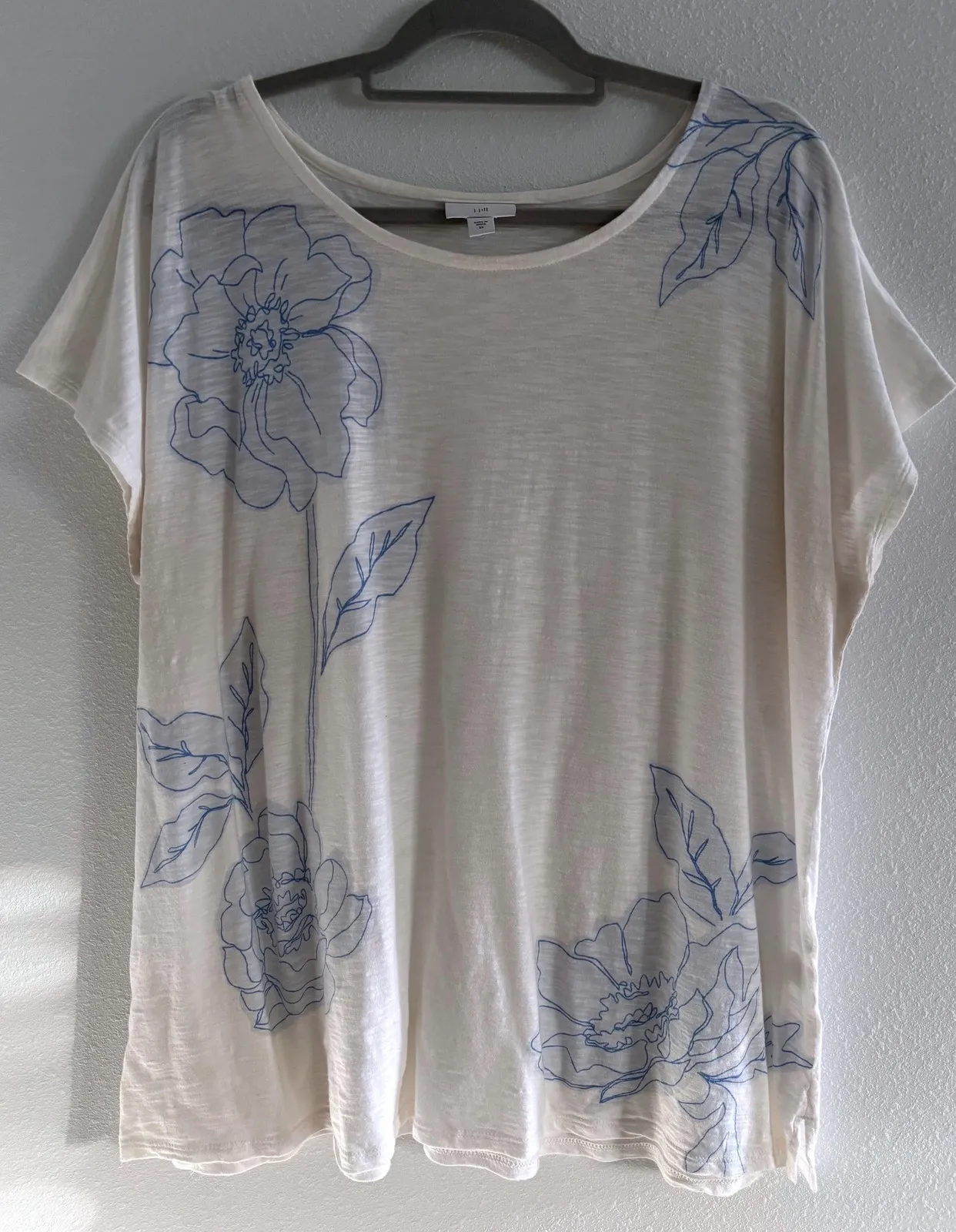 J Jill Top Womens 2XL White Blue Floral Linen Short Sleeve Boho Lightweight Size XXL - $25 - From Nothing New