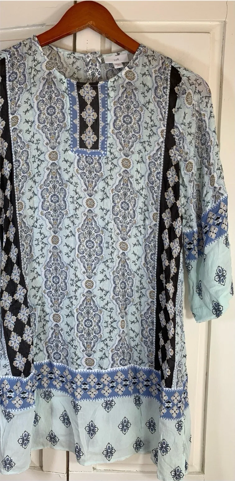 J Jill Tunic Blouse Dress‎ Women Size XS Petite XSP Boho Blue Semi Sheer Beachy - $19 - From Julie