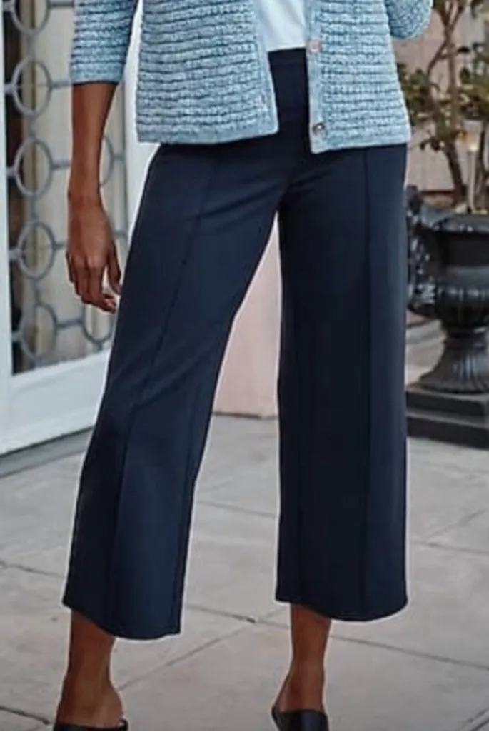 J. Jill Wearever Double-Face Jersey Pintucked Crop Pants Navy Blue Small. Style 238101. Designed in... Show more