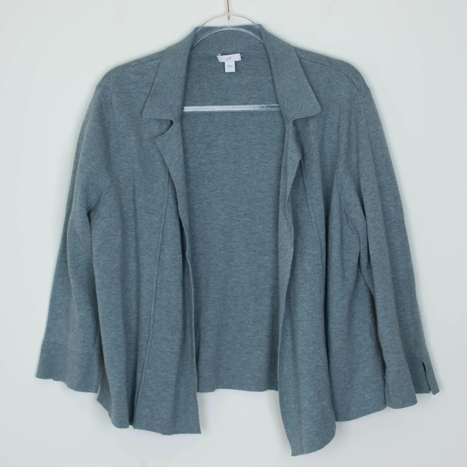 J Jill women's open front cardigan sweater in a versatile blue gray color. This stylish piece featur... Show more
