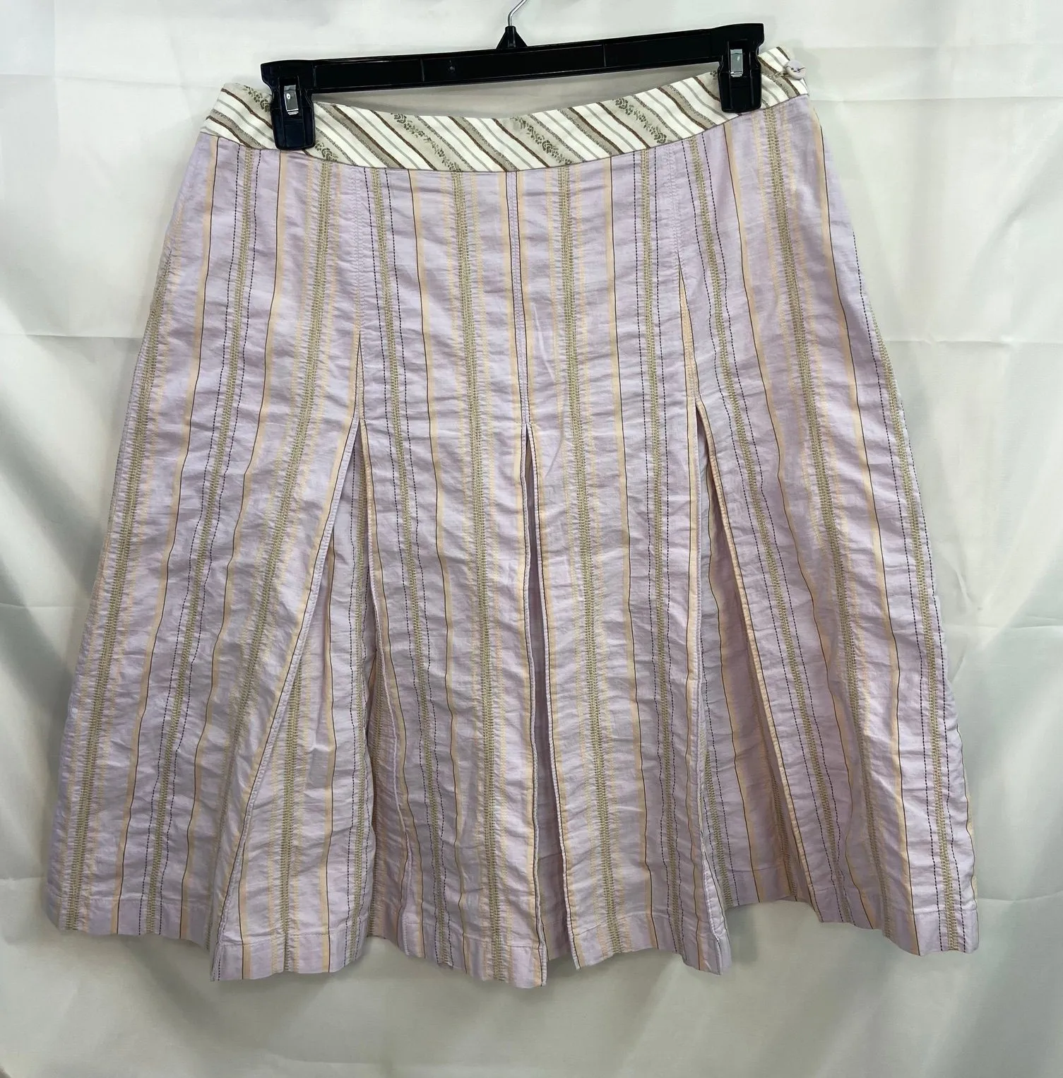 J. Jill women's lavender A-line pleated striped cotton cottagecore midi skirt Size 12 In excellent... Show more