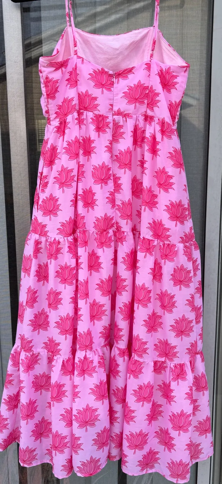 J. Marie midi dress in pink with a lotus print, size medium - $53 - From Alyssa