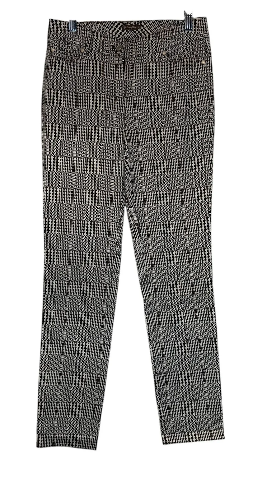 Elevate your wardrobe with these chic J.McLaughlin pants, designed to capture attention with their sophisticated plaid pattern. The flattering slim leg silhouette offers a modern and polished look, perfect for making a statement. Imagine turning heads at your next business meeting or enjoying a stylish brunch with friends in these versatile trousers. The classic black and white color palette ensures effortless pairing with a variety of tops and accessories, making them a go-to choice for both professional settings and casual outings. Measurements: • Waist: 14.5 in • Inseam: 30 in Style: Ankle Department: Women Leg Style: Skinny Type: Pants Features: Stretch, Pockets Closure: Zip, Button Pattern: Plaid Accents: Zipper, Button Occasion: Casual, Workwear Waist Size: 29 in Fit: Slim Rise: Mid (8.5-10.5 in) Front Type: Flat Front Season: Spring, Fall Unit Type: Unit Keywords: J McLaughlin, plaid pants, slim fit, black white, womens trousers, business casual, brunch outfit, sophisticated, tailored, classic print, everyday wear