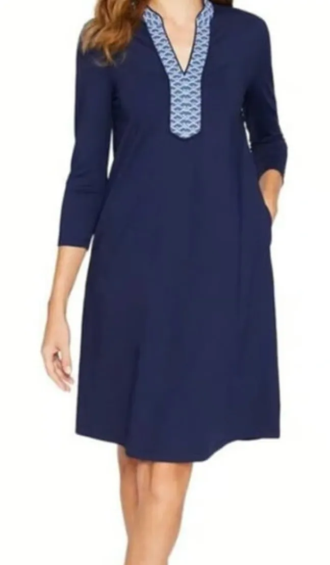 J McLaughlin Carmine Dress Women Large Blue Catalina Cloth Stretch Resort Travel - $45 - From Nothing New