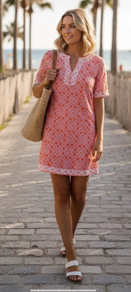 J. MCLAUGHLIN Geometric‎ Embroidered Mini Tunic Dress Preppy Beach Coastal XS Pink - $40 - From Tiffany
