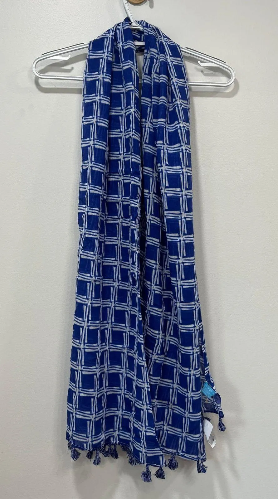 J Mclaughlin Tapestry Scarf NWT $98 Trellis‎ Geo Blue White Tassel Cotton Neck - $39 New With Tags - From Kelsey