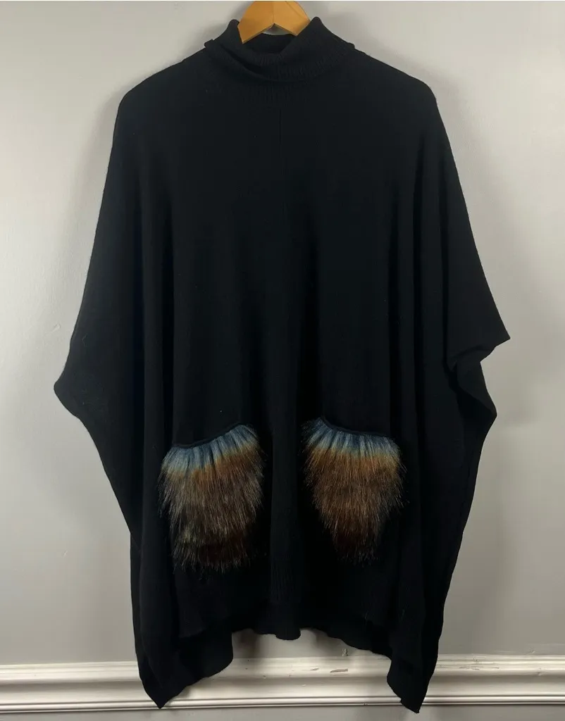 J.McLaughlin cashmere wool with faux fur pockets poncho one size turtleneck Black - $65 - From Reagan