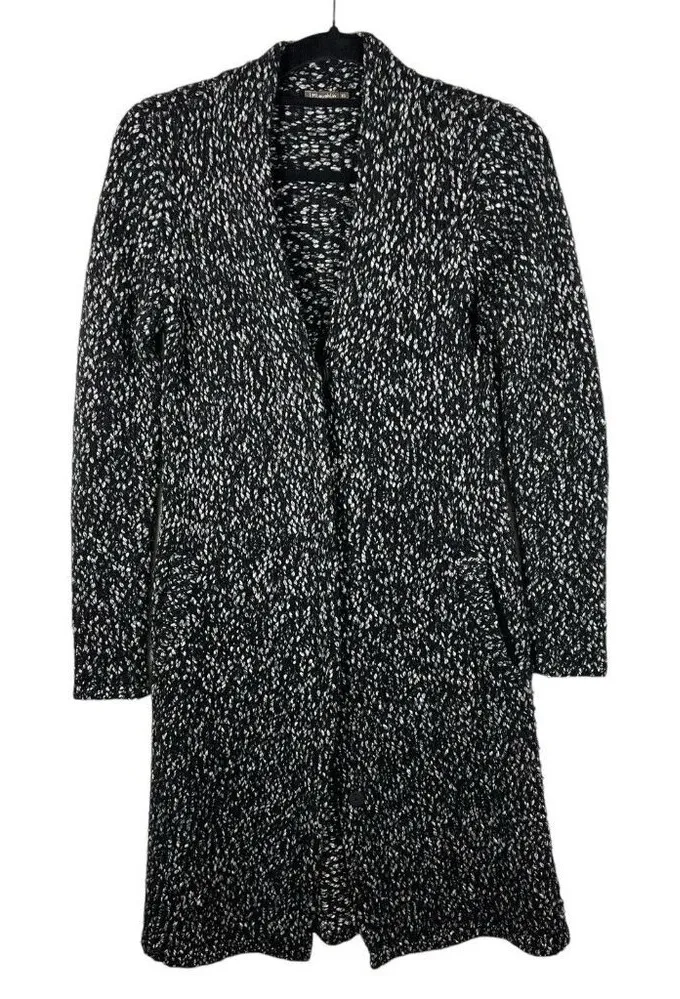 This J. McLaughlin sweater is a stylish women's cardigan in a size XS, featuring a black and white m... Show more