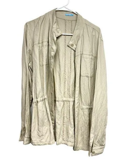 J. McLaughlin Khaki Vista Linen Blend Sky Button Up Snatched Waisted Jacket L Tan Size L - $45 - From Timothy