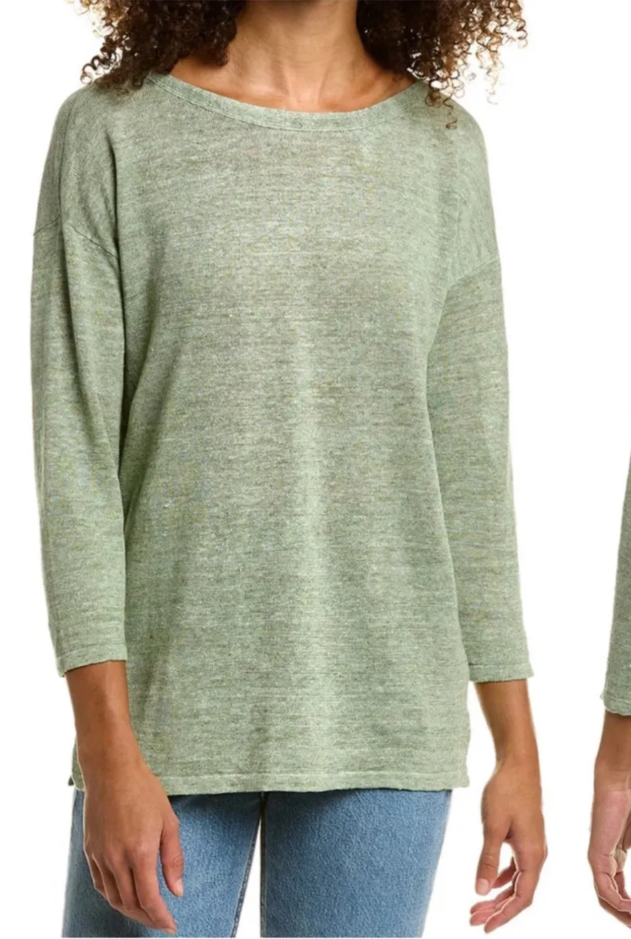 J. McLaughlin Womens Casual Beachy 100% Linen Alva Crewneck Sweater in Sage Green. Size Medium Good... Show more