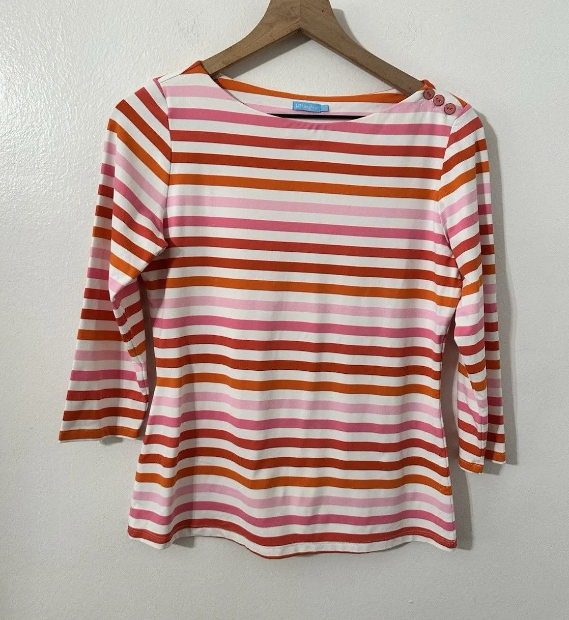 J. McLaughlin Womens Catalina Cloth Striped Button Detail 3/4 Sleeve Pink Orange - $30 - From Marissa