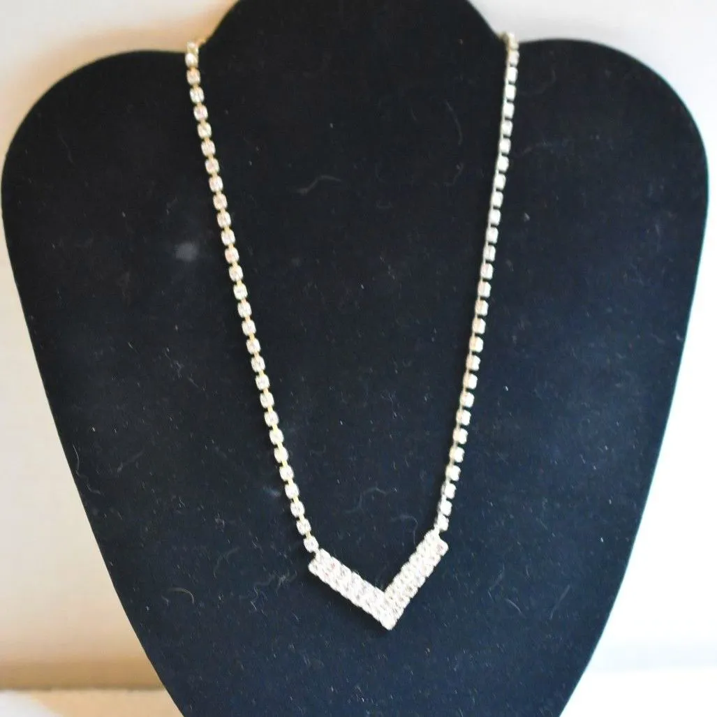 J. Stamped Vintage Dazzling V-Shaped Silver Tone Rhinestone Faceted Necklace - $32 - From Chrystal