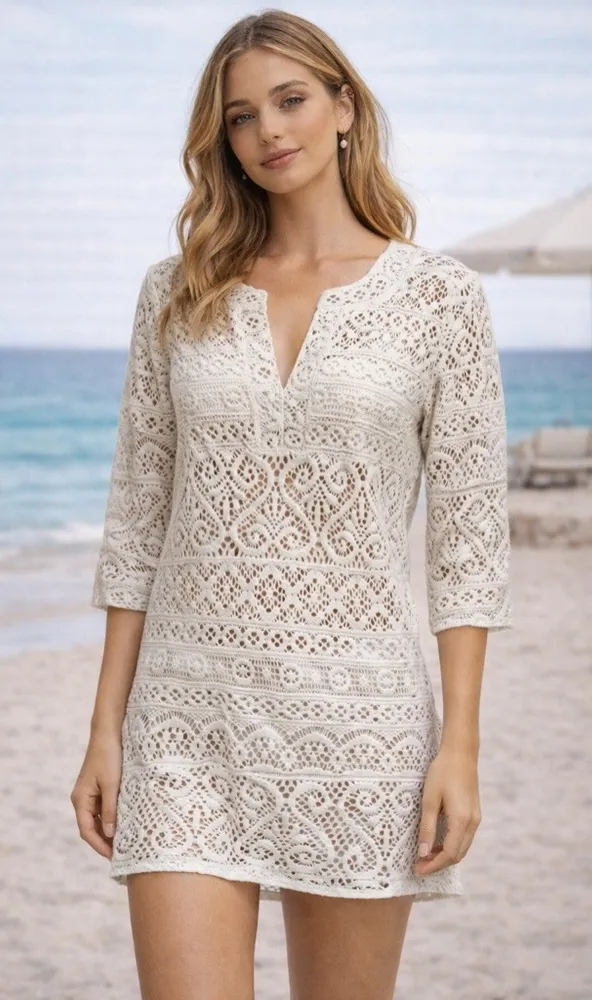 Channel effortless beachy, boho vibes with this J Valdi white crochet coverup mini dress. Designed with a sheer, open-knit lace pattern, this pullover tunic delivers a vintage-inspired 90s aesthetic with a modern, resort-ready feel. Lightweight, breathable, and easy to layer over swimwear, it’s the perfect piece for vacations, pool days, beach trips, and tropical getaways. Featuring a relaxed silhouette, 3/4 sleeves, and a deep V neckline, this coverup offers a flattering, flowy fit while keeping you cool and comfortable. Style over bikinis, one-piece swimsuits, or bralettes for an effortless coastal look. • Brand: J Valdi • Color: White/Ivory • Style: Crochet beach coverup / tunic mini dress • Fit: Relaxed, easy pullover • Sheer open-knit lace design • 3/4 sleeves • Deep V-neckline • Lightweight, breathable, perfect for summer • Boho, beach, coastal, resort-ready • Women’s Size: (Add size or measurements if known) • Recommend wearing over swimwear or lightweight layers due to sheer fabric • #Boho • #Beachwear • #Coastal • #Resortwear • #FestivalStyle • #VacationStyle • #Cottagecore • #MermaidCore • #90sVintage • #Y2K #JValdi #BeachCoverup #CrochetDress #BohoStyle #ResortWear #CoastalStyle #SummerOutfits #VacationWardrobe #FestivalStyle #MermaidCore #90sVintage #Y2KFashion #SwimwearCoverup #Beachwear