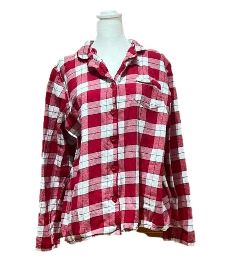 Red and white plaid flannel long sleeve sleep shirt with black lines. Croft and Barrow intimate appa... Show more