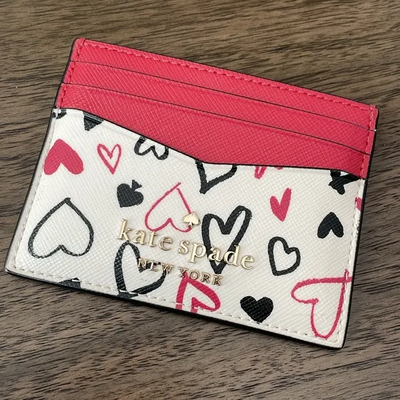 Fun and happy hearts on a Kate Spade leather card holder. New with tags in gift box. Perfect Valenti... Show more