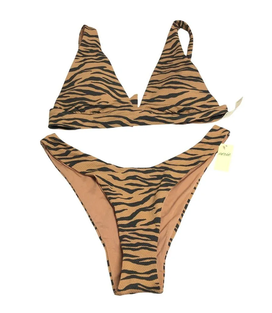 Aerie Bikini Set Cheekier High Cut Triangle Textured Tiger Stripe Brown M Size M - $38 (45% Off Retail) New With Tags - From Jen