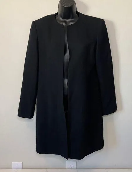 Talbots Black Long Line 100% Wool Open Front Blazer Jacket Hook and Loop Closure on Top Sz 8 Petite
