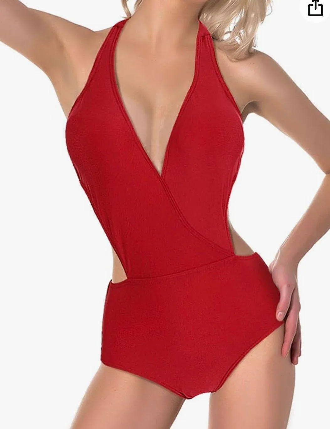 Women's One Piece Swimsuits Sexy Bikinis Swimwear Tummy Control Cutout High Waisted Bathing Push Up Suit V Neck Red Size XL - $17 New With Tags - From jello