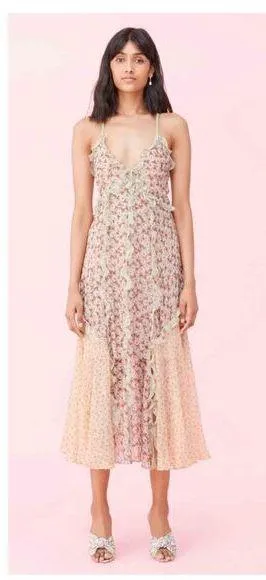 Rebecca Taylor LUCIA FLEUR DRESS size 4 New with tags Midi length 97% silk / 3% lurex Mixed mini florals bloom in soft pastels on this occasion- ready dress. Threaded with metallic lurex for a hint of shine, its relaxed silhouette features fluttery ruffles, slim crisscrossed straps and a sweeping hemline. This is an absolutely beautiful and stunning dress. F000085
