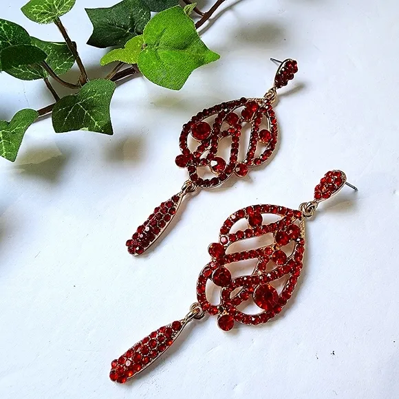 Red Crystal Rhinestone Dangle Statement Earrings - $17 New With Tags - From Elsa