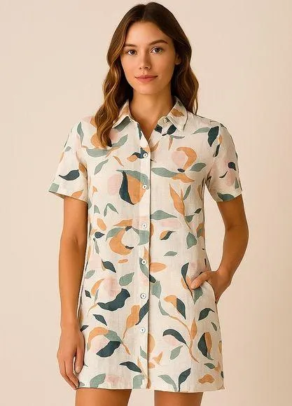 This 100% linen button-up dress is lightweight, breathable, and effortlessly stylish. The abstract f... Show more