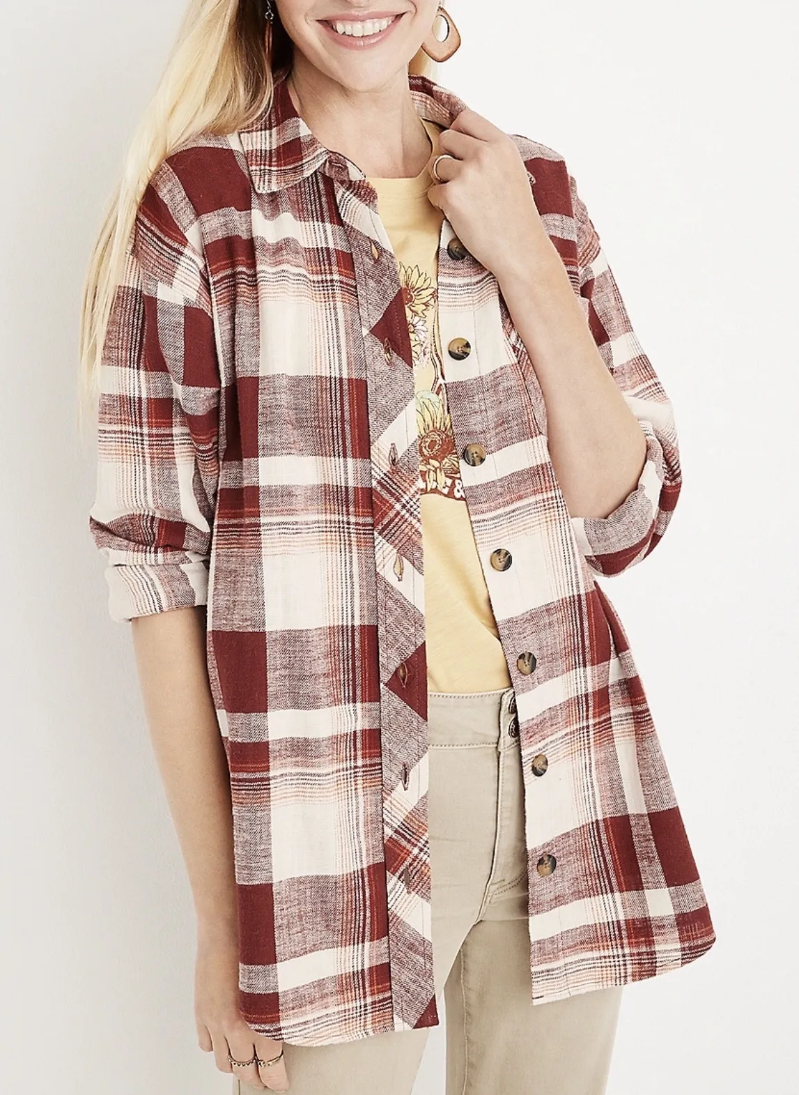 Maurices red cabin plaid button down oversized shirt. In excellent condition! Collared. Button down... Show more