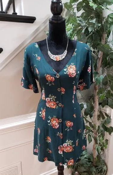 Description Wild Fable Womens Green Floral V Neck Short Sleeve Button Front Bodycon Dress S. Produ... Show more