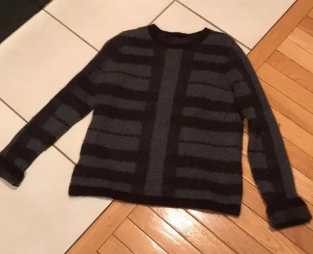 Ann Taylor sweater made with rabbit hair, alpaca, wool and etc. hand wash only. Grey and black strip... Show more