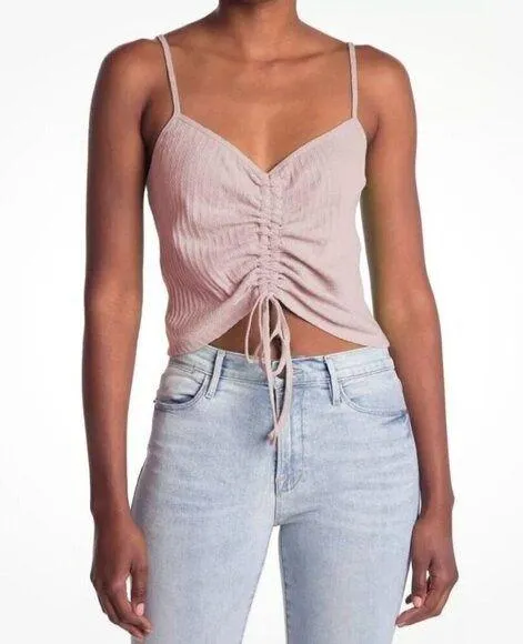 Abound by Nordstrom Pointelle Knit Ruched Tie Front Cami Tank Pink Crop Sleeveless Size: Small Colo... Show more