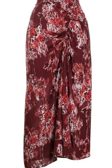 IRO Paris Alise Abstract Burgundy Print Draped Midi Skirt - New w/ Tags Size 34 - US Small Color - D... Show more