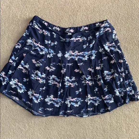 Old navy pleated skirt. Navy blue color pastel pink and peach beachy print. Front waistband is solid... Show more
