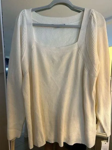 NEW Ophelia Roe Knit Sweater Square Neck Ribbed Puff Long Sleeve 3X - $20 New With Tags - From Mackooniebug