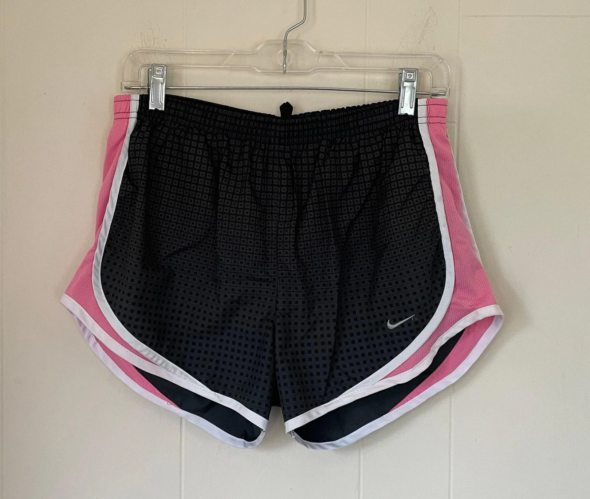 Nike Dri Fit running shorts lined black pink athletic women’s size small. 100% polyester Attached... Show more
