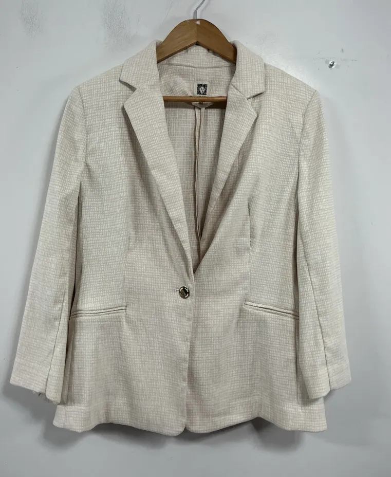 This women's Anne Klein blazer in a beige and white color features a classic 1 button closure and pa... Show more