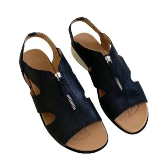 Nurture Sersey Black Leather Zipper Front Wedge Sandals Size 10 New In Box 001 Features: Black leat... Show more