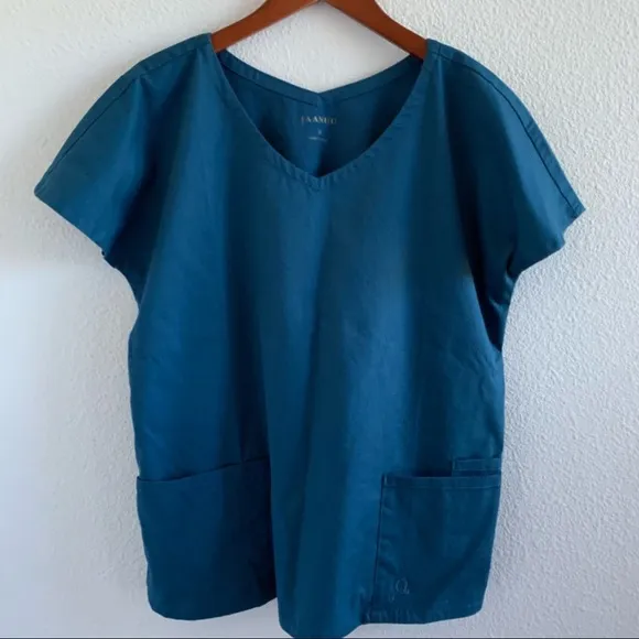 Jaanuu Scrubs Classic Top Medical Uniform Blue Preowned. Size: Medium Underarm-to-underarm: 21" L... Show more