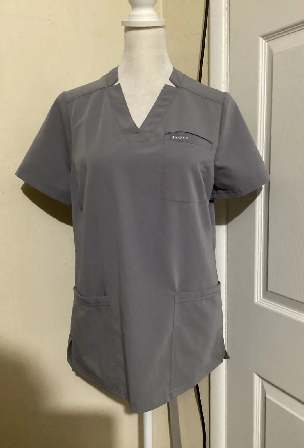 No flaws Measurements: • Bust: 18 in • Length: 26 in • Shoulder to Shoulder: 14.5 in • Sleeve Length: 7 in Gender: Women Pattern: Solid Industry: Medical Country of Origin: Vietnam Keywords: scrub, medical, healthcare, nursing, workwear, uniform, professional, comfortable, practical, utility, modern, vneck