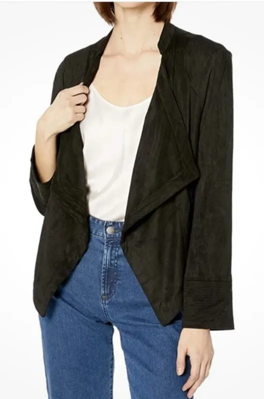 Excellent preowned condition. Big City Lights black long sleeve faux suede open blazer/jacket. Open... Show more