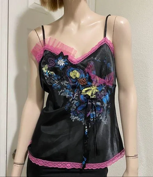 JACK by BB Dakota Black Painted/Embellished Slip Top. Size M. New without tags. Back of the front fa... Show more