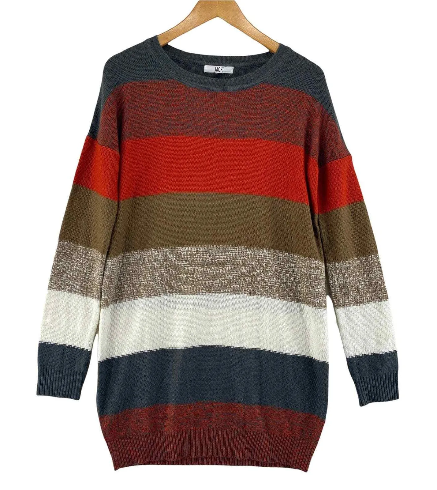 Brand: Jack by BB Dakota Size: XS Color: Gray, Orange, White Stripe Material: 100% Acrylic Good preowned condition Approximate Measurements Laying Flat Across: Chest: 21 inches Length: 30 inches Sleeve: 19 inches Seller Notes: -Same/Next Day Shipping -Smoke Free & Pet Friendly Home