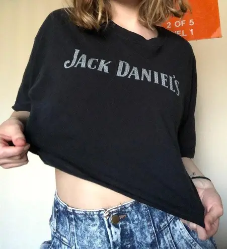 Alcohol drinkers wya?!?🖤super cute, black, cropped, jack daniels tee. this is a size large and the model is a size medium for reference. This was self cropped. in perfect condition, with no rips or stains!🖤 love wearing this to lounge around in or even to pop out. i get so many compliments on my alcohol tees that it’s crazy. looks soooo cute and is super comfy too.