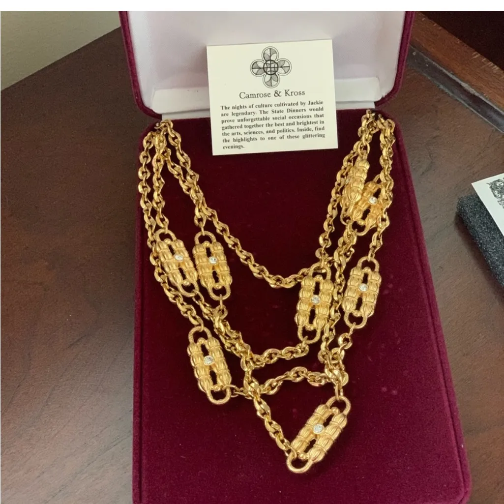 Vintage New with tags. Jackie Kennedy, 10k Gold Plated, Paperclip Necklace Stamped JBK. Comes with original Box and certificate. Vintage Cambrose&Kross Jackie Kennedy 10KGP Necklace, Chanel Replica with Austrian Crystals in Gift Box