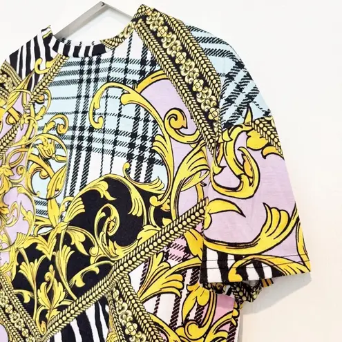 Jaded London Matching 2 Piece Set Shirt Shorts Summer Luxury Club Gold XS Small Crew neck Short sleeves Elastic waistband Drawsting waist Dolphin hem shorts Top Size XS Bottoms Size Small Pit to Pit 20" Length 22" Waist 13" Inseam 2.25" Measurements are approximate while flat