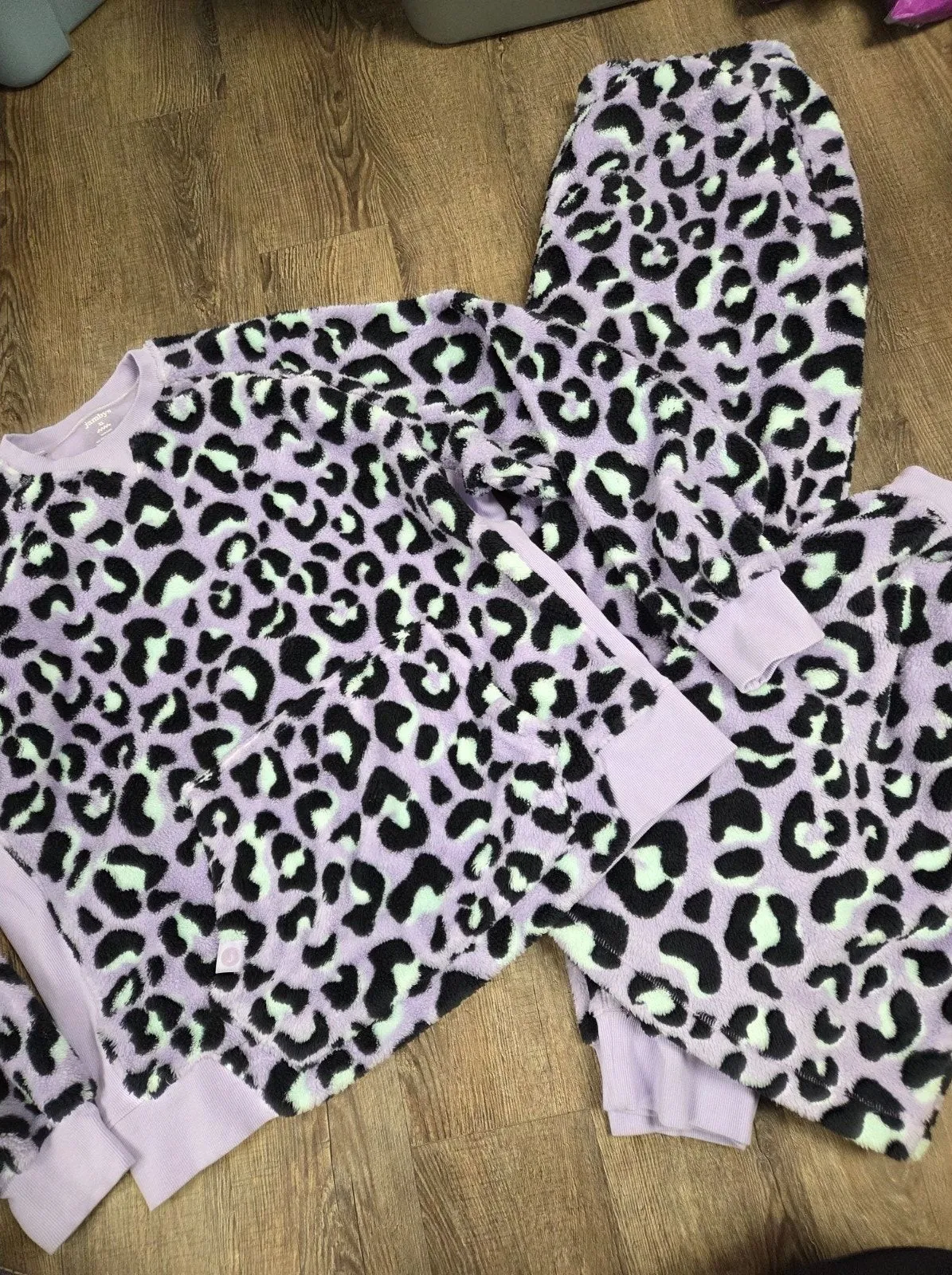 Jamby's Floof Lavender Leopard Joggers Pants Shorts Crewneck Pajama Set XL Purple - $69 - From Mary